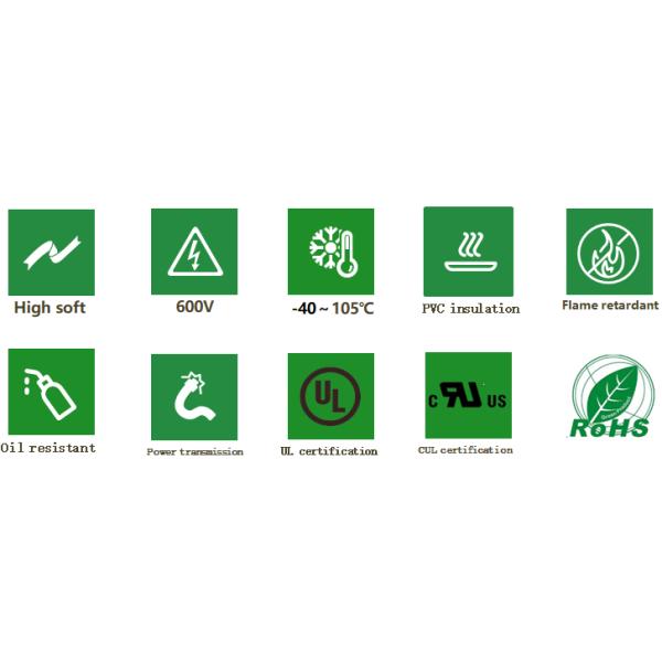 The wiring of the elevator control cabinet with a rated voltage of 600V-the wires are made of copper conductors and insulation. The cable has the characteristics of high flexibility, high temperature resistance, oil resistance, flame retardancy, etc. At the same time, all materials of the cable comply with the latest environmental protection standards of RoHS&Reach.